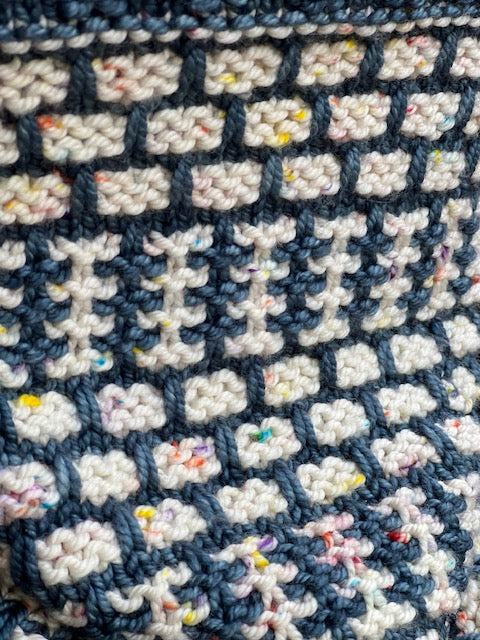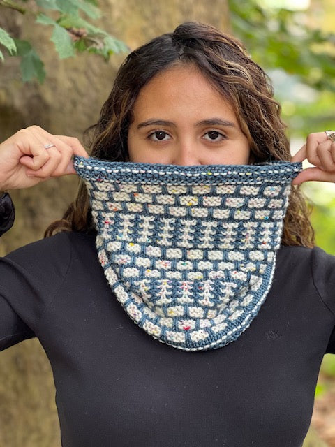 This is a collaboration between KraeO, Louis Boria of Brooklyn Boy Knits and Austin Rivers of Knit the Rainbow. This gorgeous cowl is a labor of love, for love. KraeO created an exclusive colorway to be used in this lovely design by Louis.