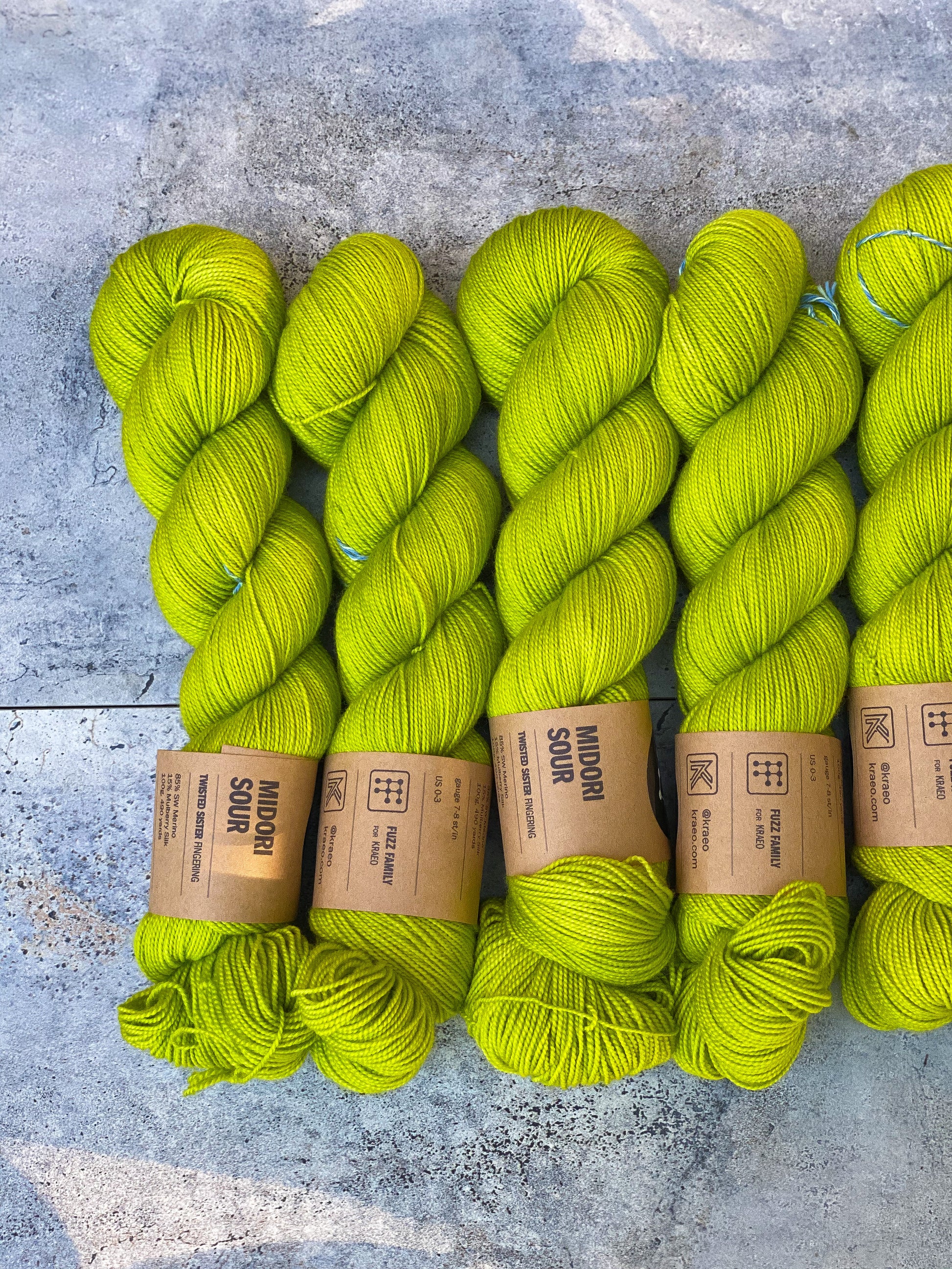 Fuzz Family yarn is dyed in small batches of 2-4 skeins per lot. If using more than one skein per color way, its highly recommended that you alternate skeins every 3-5 rows.