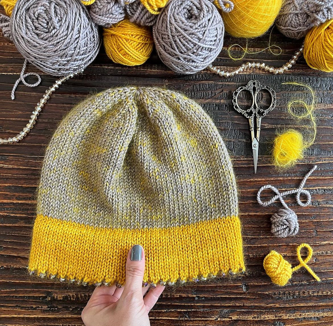 *** If your're local (in the chicagoland area) You can choose a pick up option at Miss Purl in chicago. Upon picking up your order, Miss purl will give you a tutorial on how to bead the brim of your hat, FREE OF CHARGE!***