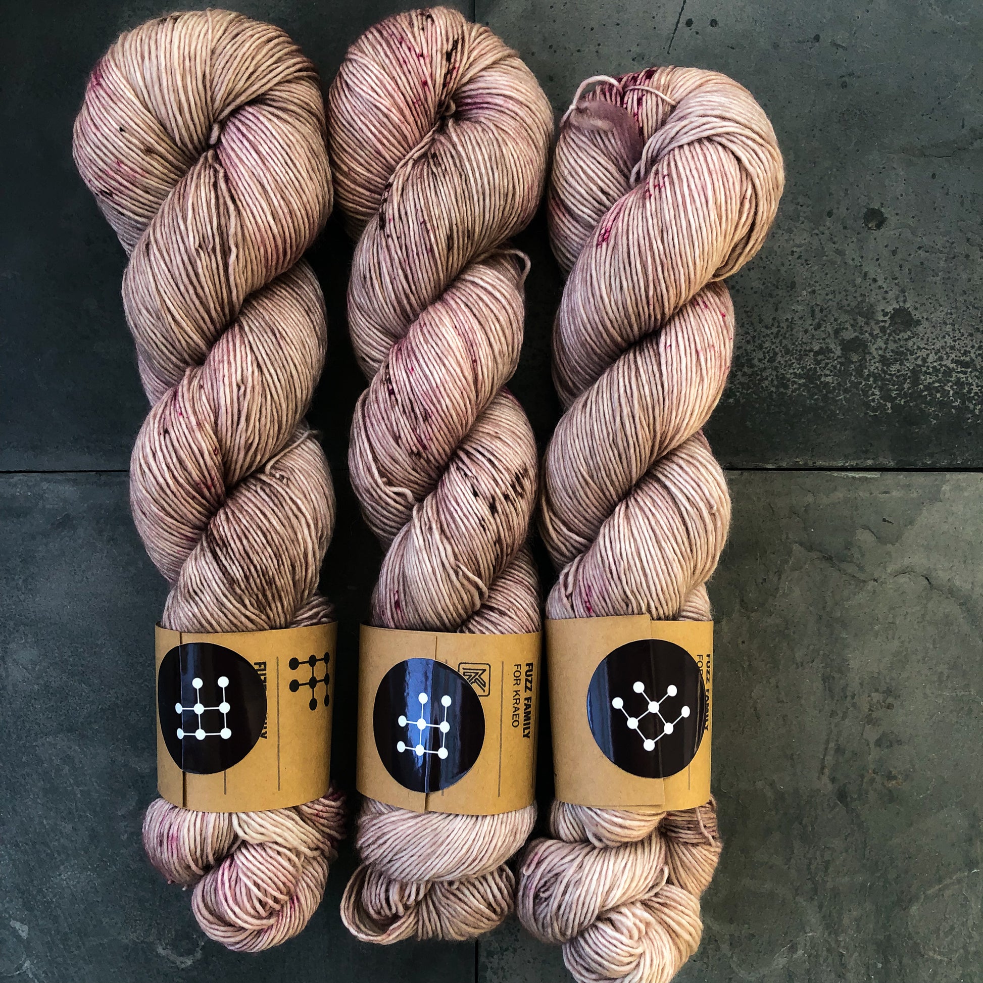 Fuzz Family yarn is dyed in small batches of 2-4 skeins per lot. If using more than one skein per color way, its highly recommended that you alternate skeins every 3-5 rows.